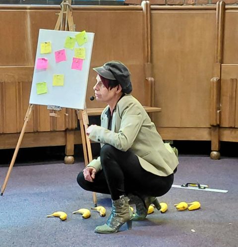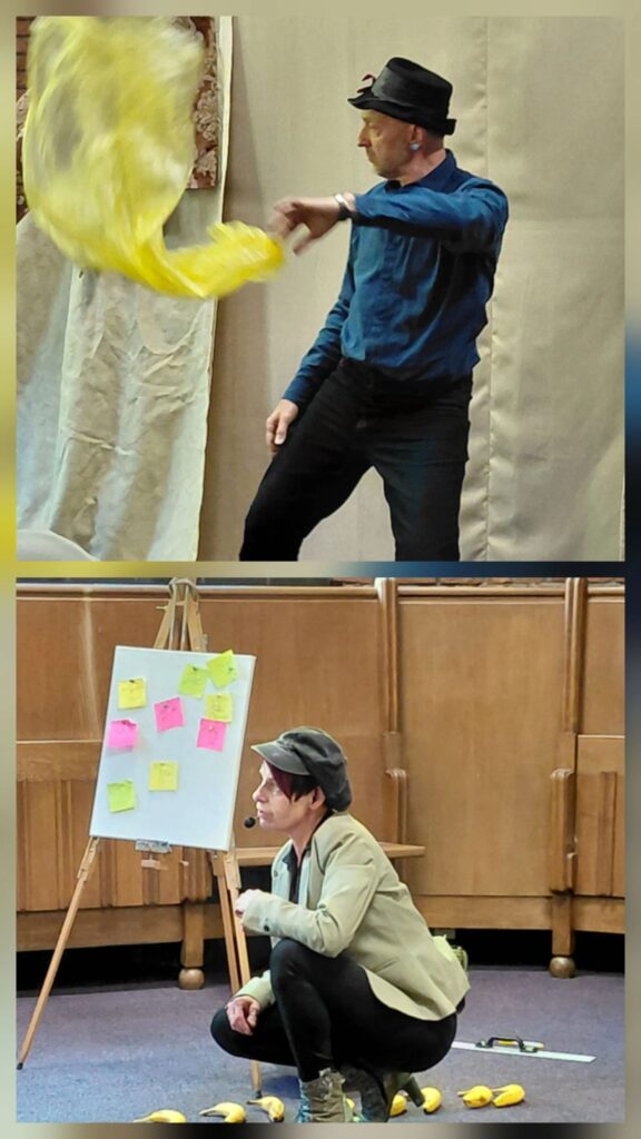 Door middel van bananen, gereedschappen en een klok illustreren de spelers een wereld tussen waanbeelden en werkelijkheden. Spelmag'Rzijn is er ondanks het zware onderwerp in geslaagd om u lichtvoetig en met hoop naar huis te sturen. Isjoes genoeg werpt een scherpe blik op het zorgsysteem en biedt een ingang naar een diepgaander gesprek.